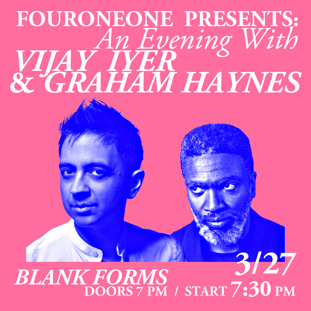 This event is part of Graham's residency at FourOneOne. The project, over the course of four weeks in March and April, spans performances, master classes, listening parties, and conversation with Robin D. G. Kelley; Adam Rudolph and Maalem Hassan Hakmoun; Vijay Iyer; Nublu Orchestra; Shakoor Hakeem and Lucie Vítková; Momenta Quartet, and others.