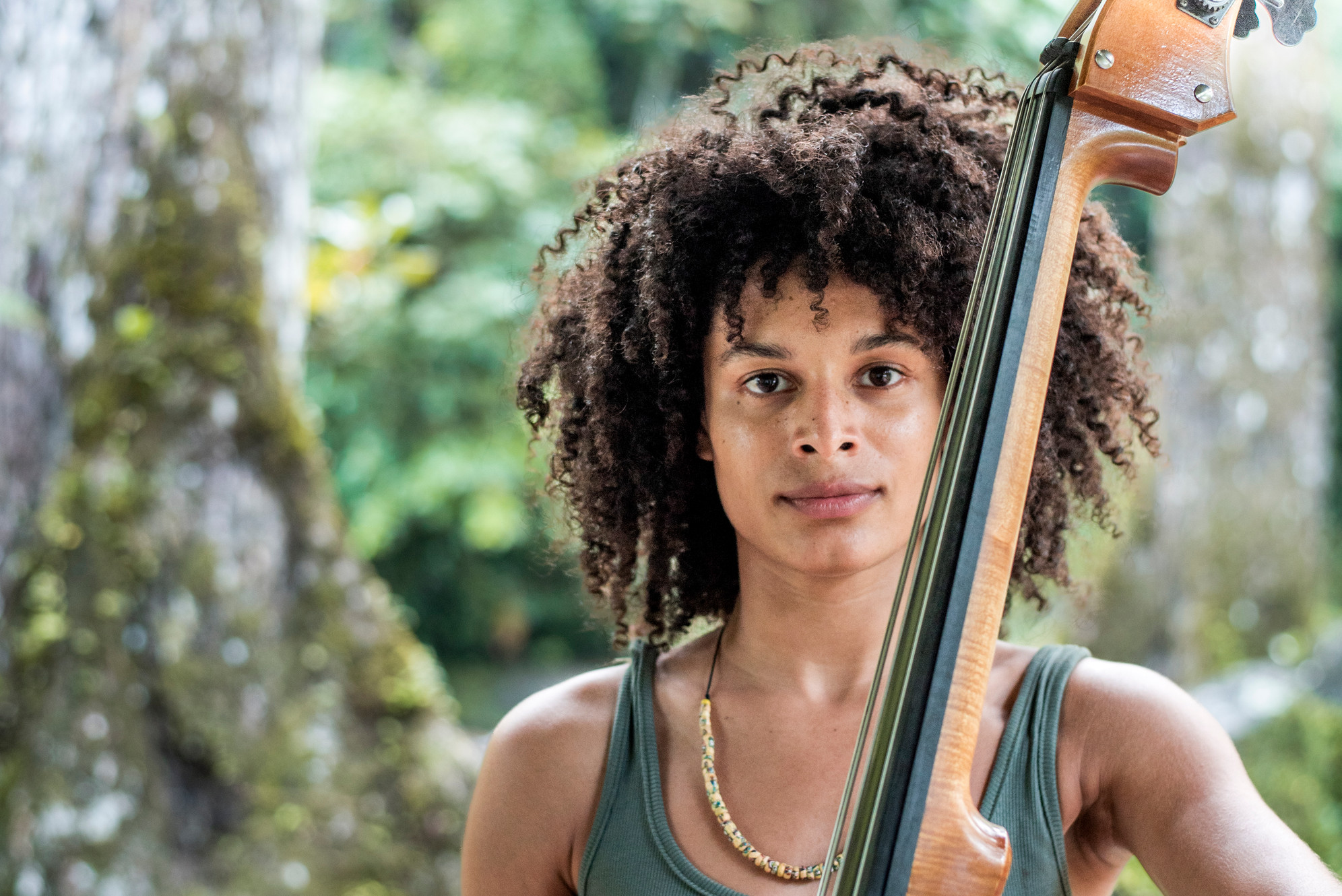 Sélène Saint-Aimé is a French contrabassist, singer, composer and poet with Caribbean and West African origins. She studied with internationally acclaimed bassists Ron Carter and Lonnie Plaxico as well as the saxophonist and conceptualist Steve Coleman. Sélène recently received a “Victoire du Jazz 2021” award in the “Rising star” category for her acclaimed first record, Mare Undarum. Sélène was a composer in residence at Tropiques Atrium in Martinique from 2021 until 2024, a 2022 Villa Albertine laureate in New Orleans, and a 2023 Villa Ndar laureate in Saint Louis, Senegal.